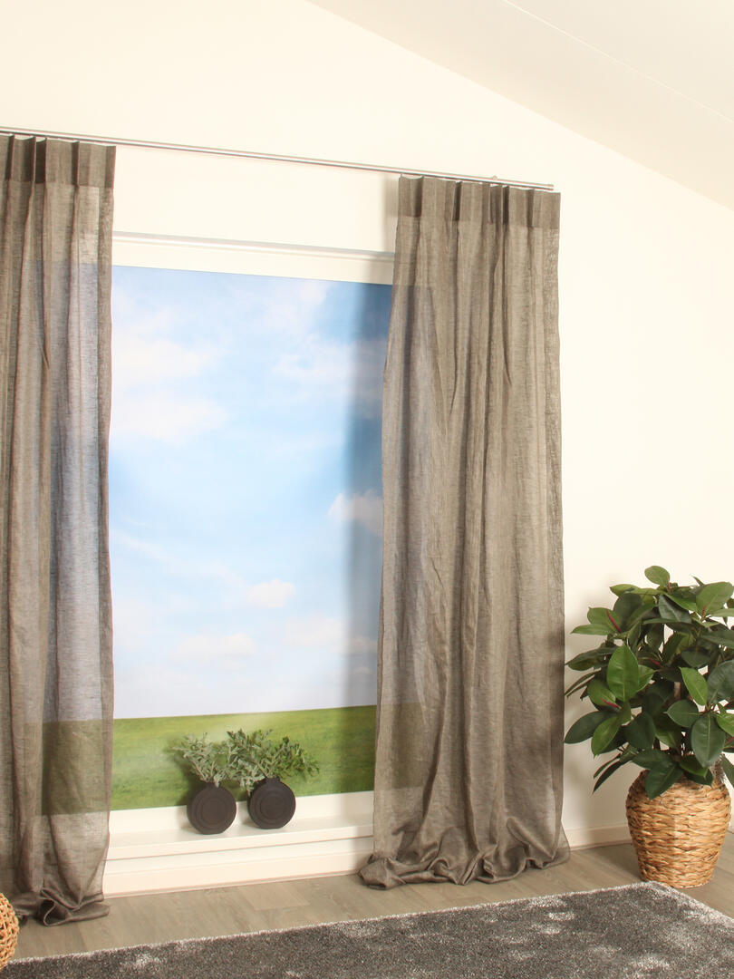 Let op! Inbetween Aughrim is een breedtestof van 140cm. Bij breedtestoffen word een verticale naad in het gordijn gemaakt op de plaats waar de banen aan elkaar gezet worden.