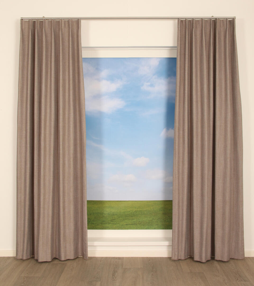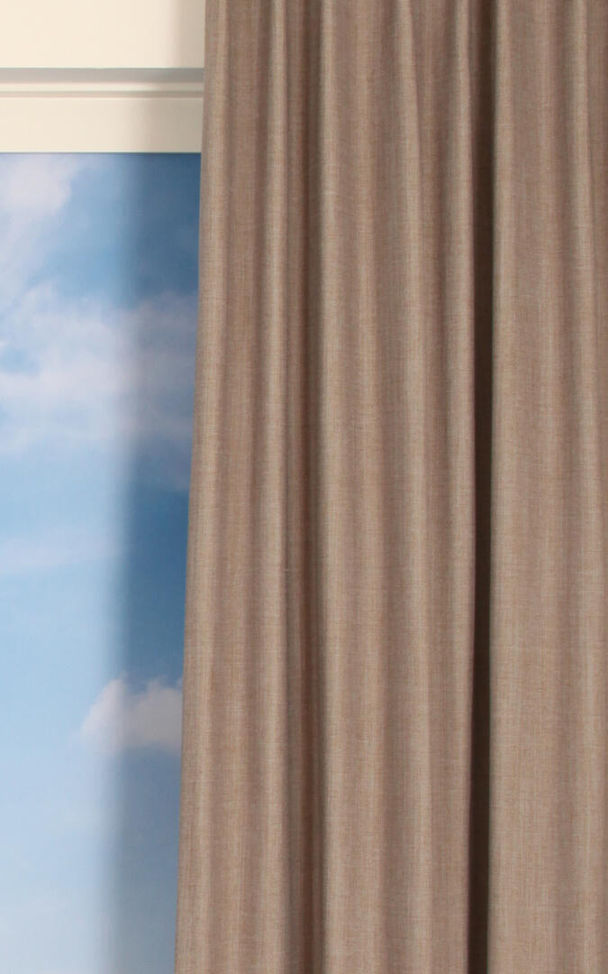 Deze stof is kamerhoog, wat betekent dat deze gordijnen naadloos kunnen worden geconfectioneerd voor een luxe en elegante uitstraling.