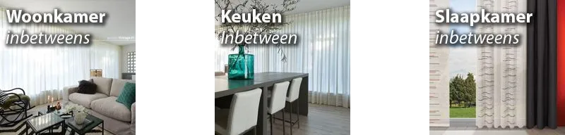 Een ander soort kant en klare gordijnen zijn de inbetweens. Inbetweens zitten als het ware tussen de overgordijnen en vitrages in: ze worden niet gecombineerd met één van beide andere soorten gordijnen en zorgen vaak voor extra ruimte in huis en een sfeervol geheel.