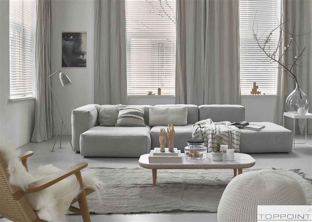 Lichte kleuren en vergrijsde pasteltinten zorgen ervoor dat je meer licht in een ruimte creëert. Met wit kun je ook meer licht in je interieur creëren, het reflecteert het zonlicht waardoor een ruimte lichter lijkt. Maar met teveel wit in je interieur bestaat de kans dat het een kille uitstraling krijgt. Heb je een wit interieur en wil je op een subtiele manier kleur toevoegen? Kies dan voor pasteltinten, zoals overgordijn Sulto of Inbetween Selskar.