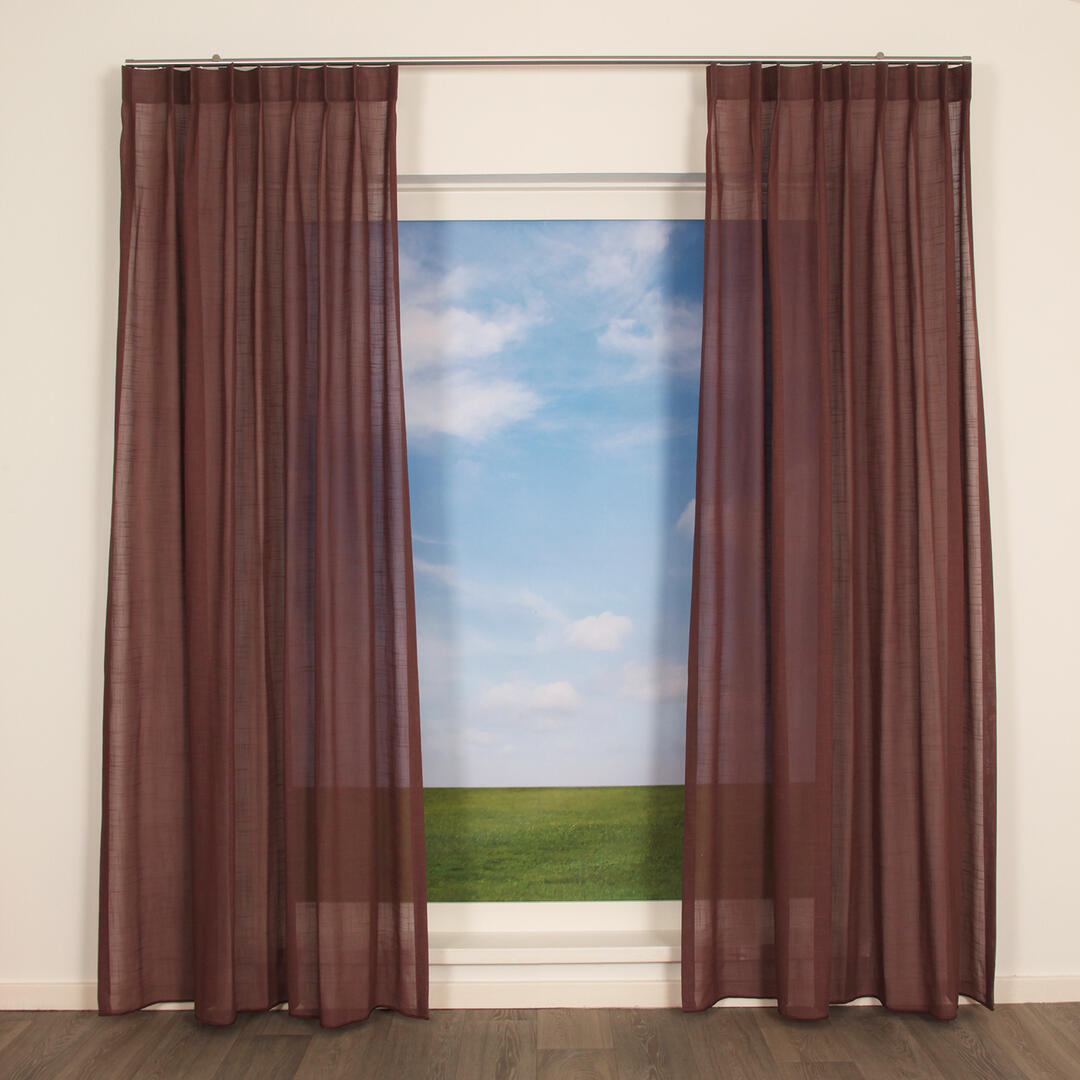 Deze kamerhoge luchtzuiverende Inbetween heeft een luxe Boucle optiek, een open structuur met zowel verticaal als horizontaal onregelmatige verdikkingen in het garen. Dit geeft een speels lijnenspel en ziet er zacht en levendig uit. Door de unieke technologie dat vergelijkbaar is met de werking van planten, zorgt de stof dat vervuiling in de lucht wordt omgezet in schone lucht. Verontreinigde lucht wordt afgebroken en weer gezond, geurloos en fris gemaakt. Het effect is permanent in het textiel aangebracht, bestand tegen wassen en dus blijvend. De technologie is niet schadelijk voor de gezondheid maar juist bevorderend. Standaard wordt deze inbetween afgewerkt met een loodveter. Door de kamerhoge stof kan deze naadloos worden geconfectioneerd. Uitermate geschikt voor wave of een dubbele retourplooi, zodat de stof prachtig in zijn plooi valt.