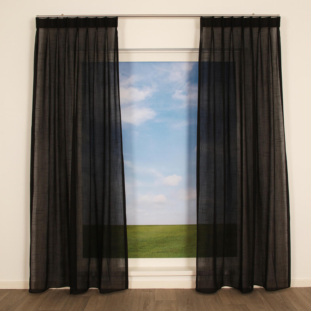 Deze kamerhoge luchtzuiverende Inbetween heeft een luxe Boucle optiek, een open structuur met zowel verticaal als horizontaal onregelmatige verdikkingen in het garen. Dit geeft een speels lijnenspel en ziet er zacht en levendig uit. Door de unieke technologie dat vergelijkbaar is met de werking van planten, zorgt de stof dat vervuiling in de lucht wordt omgezet in schone lucht. Verontreinigde lucht wordt afgebroken en weer gezond, geurloos en fris gemaakt. Het effect is permanent in het textiel aangebracht, bestand tegen wassen en dus blijvend. De technologie is niet schadelijk voor de gezondheid maar juist bevorderend. Standaard wordt deze inbetween afgewerkt met een loodveter. Door de kamerhoge stof kan deze naadloos worden geconfectioneerd. Uitermate geschikt voor wave of een dubbele retourplooi, zodat de stof prachtig in zijn plooi valt.