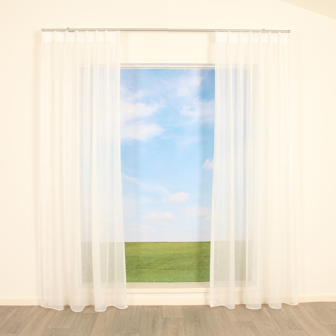 Deze stof is kamerhoog, wat betekent dat deze gordijnen naadloos kunnen worden geconfectioneerd voor een luxe en elegante uitstraling.