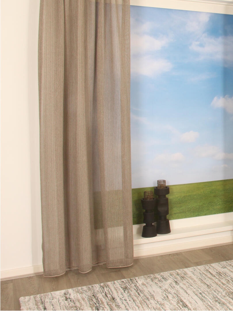Deze stof is kamerhoog, wat betekent dat deze gordijnen naadloos kunnen worden geconfectioneerd voor een luxe en elegante uitstraling.