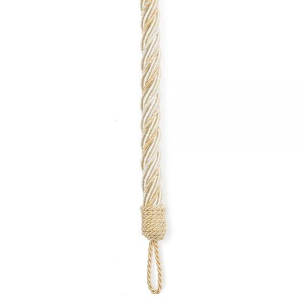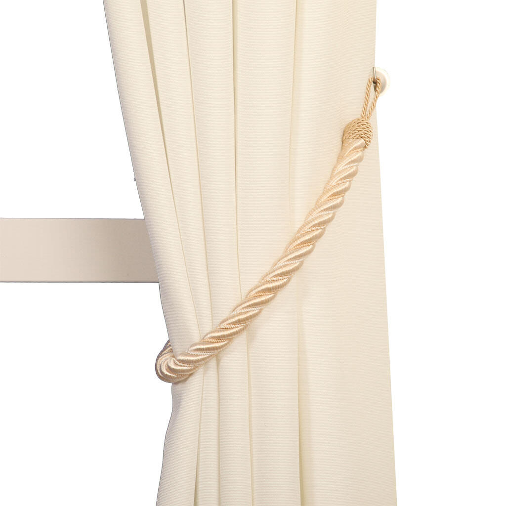 Glanzende champagne embrasse van twee gedraaide koorden. De embrasse heeft een goede kwaliteit en is makkelijk te combineren door het gebruik van meerdere tinten naturel/champagne/zachtgeel