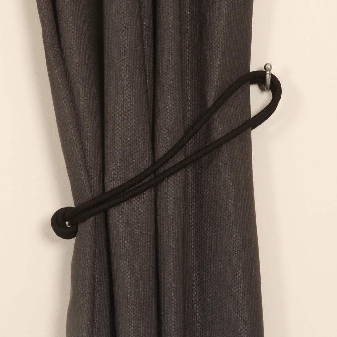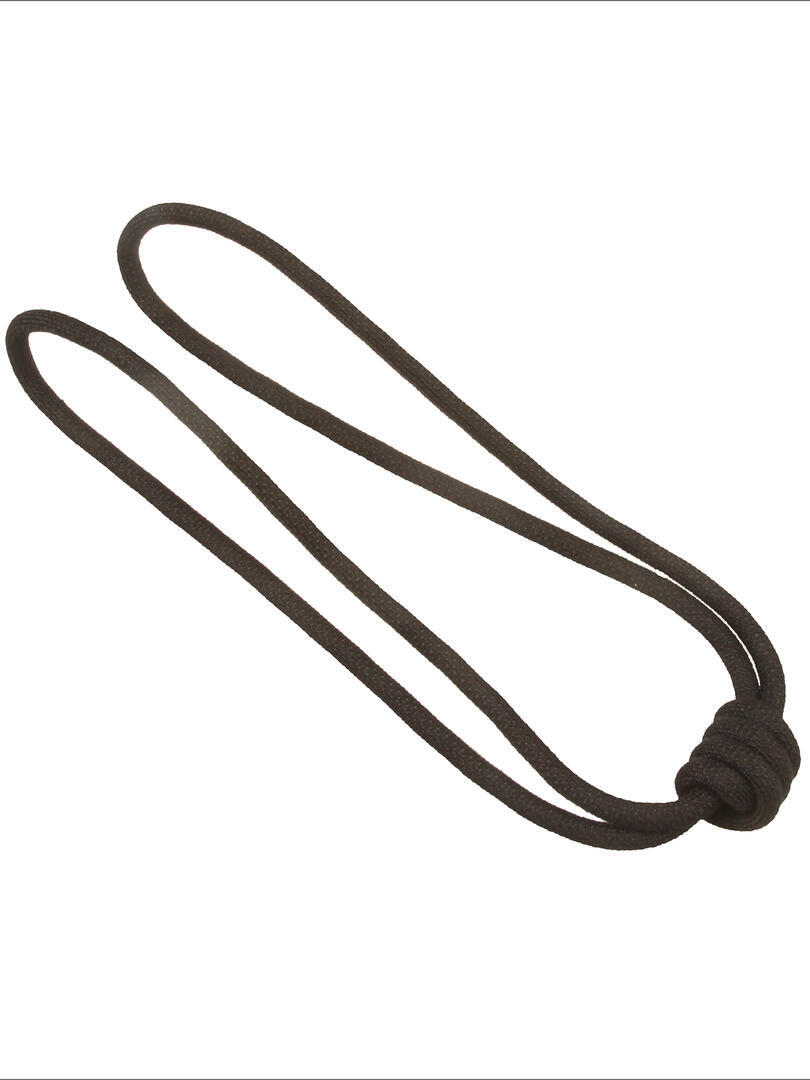 Embrasse met een glanzende look en een zeer fijne "gebreide" structuur. Deze soepele embrasse is voorzien van grote lussen. In het midden is de embrasse voorzien van een "drievoudige" knoop. De embrasse heeft een totale lengte van 64cm recht gemeten en een koorddikte van 1cm. Beide lussen zijn 30cm en de knoop is 4cm.
