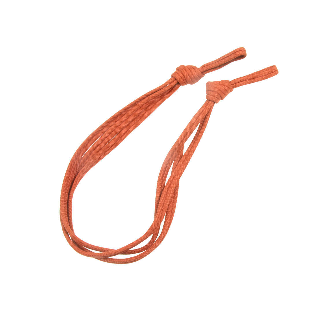 Bijzondere embrasse met een "linnen" look. Deze embrasse heeft 3 koorden die onder elkaar hangen om het gordijn tegen te houden. de koorden hebben een dikte van 3mm en zijn 1,2cm breed. Elke koord heeft een ingestikte naad waardoor een effect onstaat alsof het een dubbel koord lijkt. Aan het uiteinde bij de bevestigingslus zit een knoop. De lengte van de embrasse is ongeveer 85cm. De bevestigingslus is ongeveer 5,5cm en de knoop is ongeveer 4,5cm.