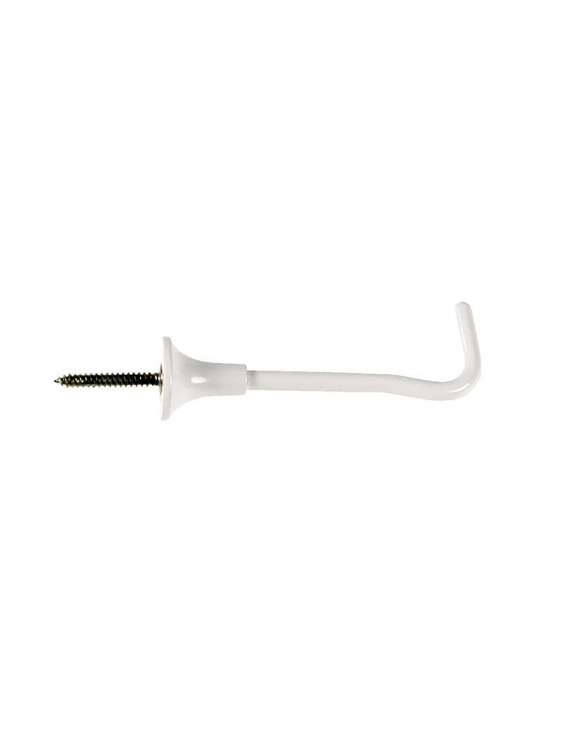 Lange geborstelde embrassehaak Mahler, uitgevoerd in gelakt wit, is 10 cm lang. Deze is handig op plaatsen waar de gordijnen wat verder van de muur hangen.