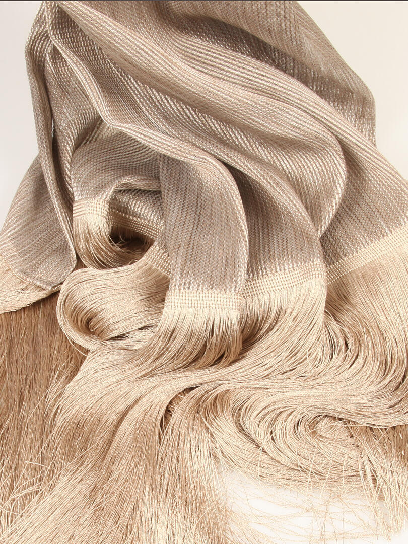 Inbetween Gistel is een 100% polyester stof die verrassend afgewerkt is met een franjeband van 36cm. De franjeband is gemaakt van 100% viscose en mag alleen gereinigd worden bij een stomerij.