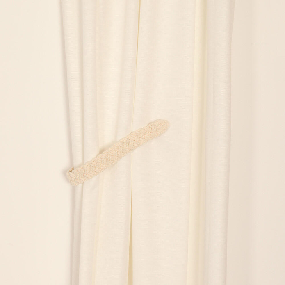 Stoere embrasse van een dikker gevlochten band in een mat garen. De band is aan de achterzijde voorzien van twee magneten, de embrasse wordt met de magneten aan het gordijn bevestigd. De embrasse heeft een breedte van 3,5 cm en een lengte van 58 cm.