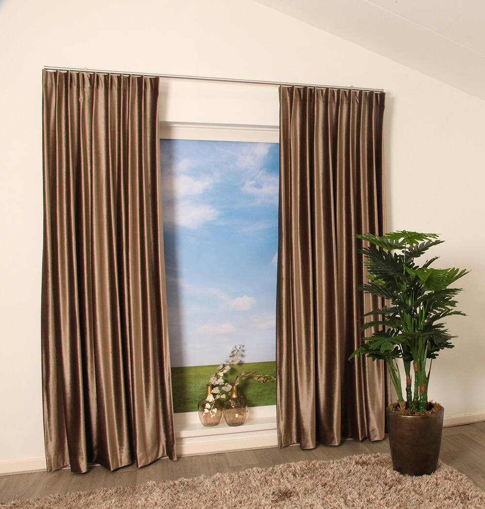 Door de kamerhoge stof kan het gordijn naadloos worden geconfectioneerd, wat zorgt voor een elegante en gestroomlijnde uitstraling zonder storende naden. De stof voelt zacht en soepel aan, waardoor het gordijn prachtig valt en mooi in de plooi komt.
