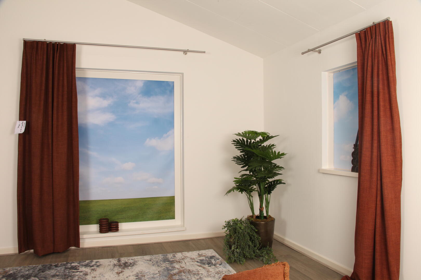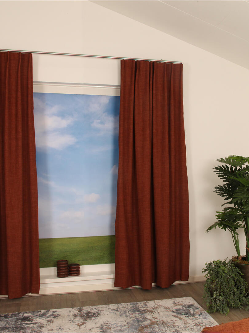 De rustige, warme uitstraling van Orion draagt bij aan een uitnodigende sfeer in je woning. Orion is een kamerhoge overgordijnstof dan gemaakt is van 85% gerecycled polyester garen. Of je nu een moderne, minimalistische inrichting hebt of een meer klassieke stijl, de tijdloze kleuren en het zachte, natuurlijke gevoel van de stof passen perfect in iedere woonruimte. Met dit duurzame overgordijn haal je rust en warmte in je huis en draag je ook nog bij aan een kleine ecologische voetafdruk. De stof is kamerhoog, wat betekent dat deze gordijnen naadloos kunnen worden geconfectioneerd voor een luxe en elegante uitstraling. De onderzijde van de stof wordt zorgvuldig afgewerkt met een onderzoom, wat niet alleen zorgt voor een nette afwerking, maar ook bijdraagt aan de duurzaamheid en de lange levensduur van de gordijnen.