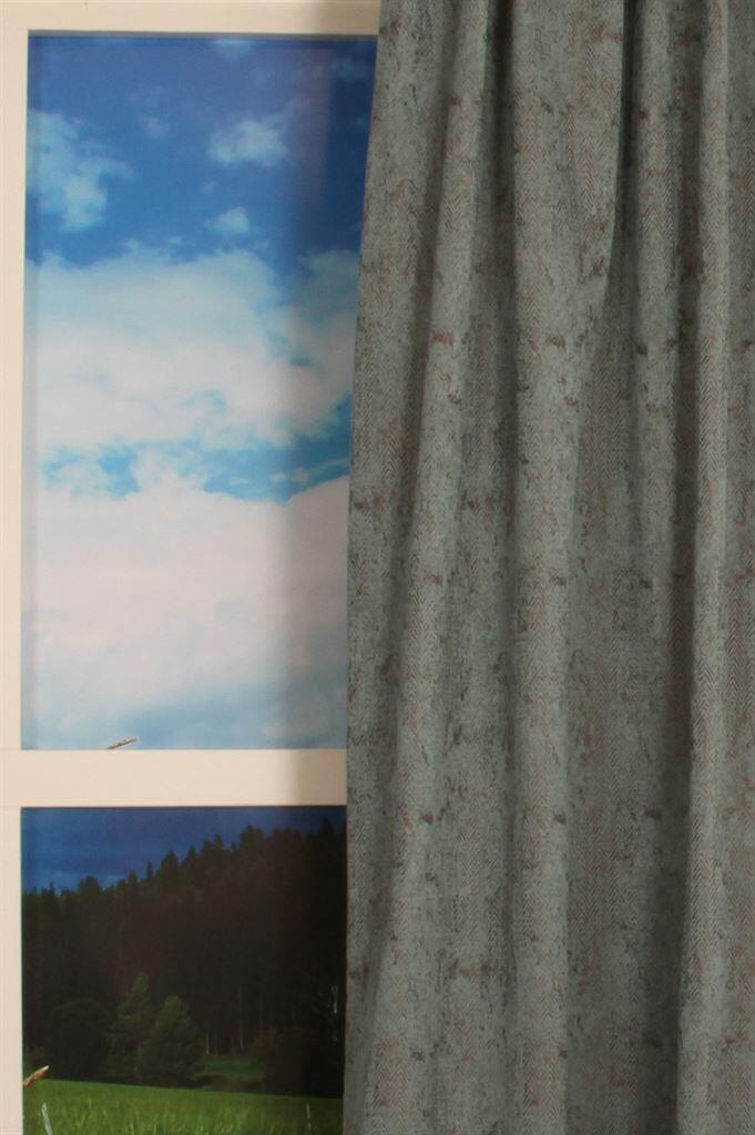 Deze zware overgordijnstof van Holland Haag in blauwgroene tinten is een echte eyecatcher. Met deze stof geef je sfeer en uitstraling aan je woon of slaapkamer en creëer je een bijzonder plaatje. Deze geweven stof heeft een vervaagd v-patroon in een blauwgroene/bruine kleur. De achterzijde is bruiner en laat een vervaagd beeld van het patroon zien.