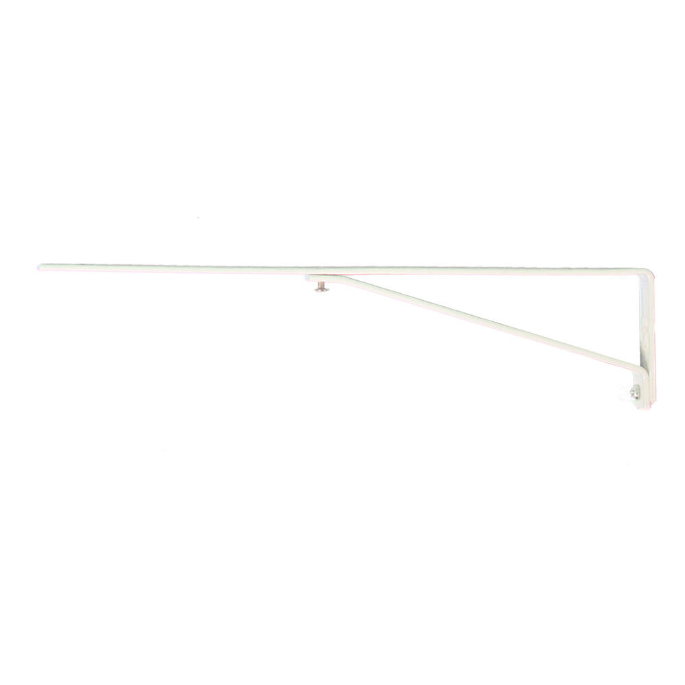 Universele afstandssteun wit van 30cm met schoor. Deze steun kan gebruikt worden in combinatie met de normale plafondsteunen van gordijnrails. Met het meegeleverde schroefje zet u de plafondsteun vast aan deze steun. (Schroeven voor bevestiging aan muur niet meegeleverd)