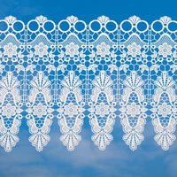 Prachtige zware kwaliteit paneelval volledig in kant. De panelen zijn 7,5 cm breed. Met bloempatroon in verschillende uitvoeringen. Gemiddelde hoogte 35cm.