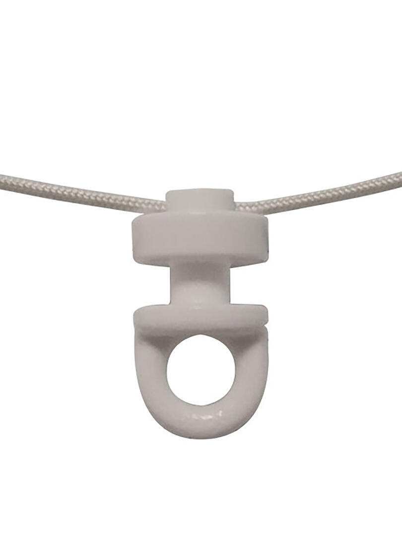 Wave glijder wit op koord 6cm geschikt voor breedspoor rails met een vlak binnenwerk zoals KS, Wave, DS of DS XL rails. Deze glijders worden per stuk verkocht maar geleverd in 1 lengte koord. De tussenafstand tussen de glijders is 6cm.
