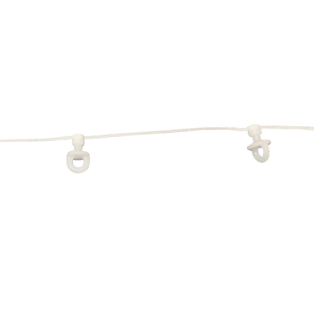 Waveglijder wit op koord 8cm geschikt voor smalspoor rails zoals Slide, Caro etc. Deze glijders worden per stuk verkocht maar geleverd in 1 lengte koord. De tussenafstand tussen de glijders is 8cm