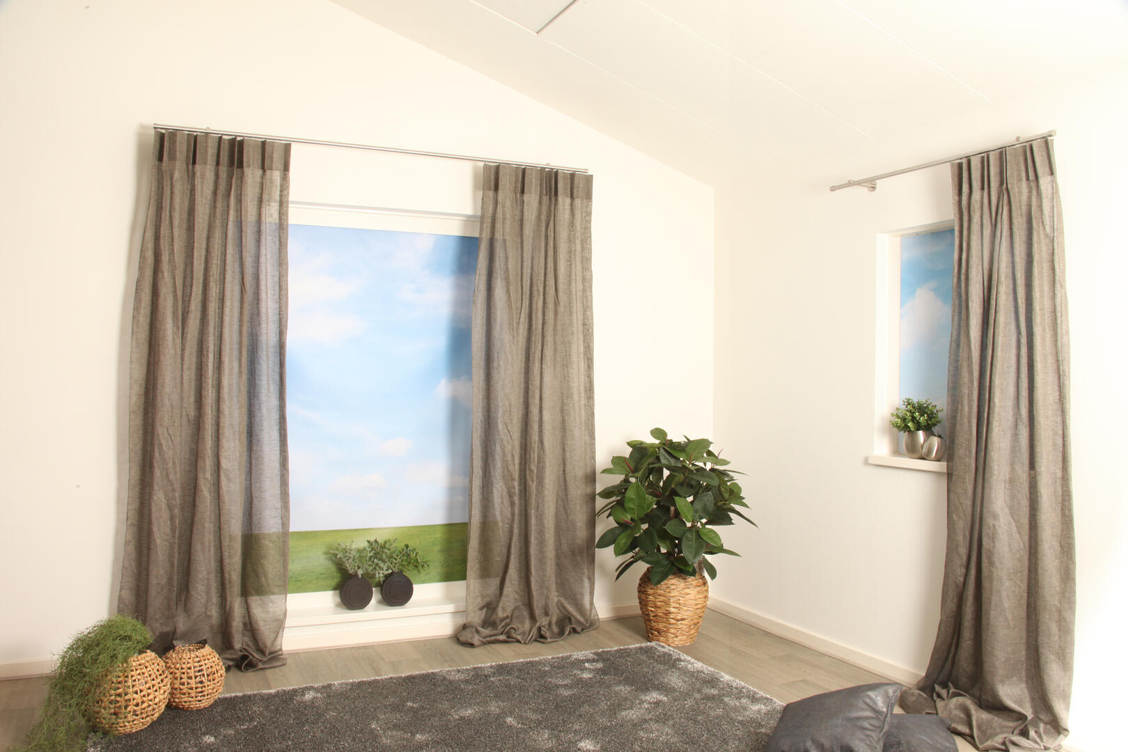 Let op! Inbetween Aughrim is een breedtestof van 140cm. Bij breedtestoffen word een verticale naad in het gordijn gemaakt op de plaats waar de banen aan elkaar gezet worden.