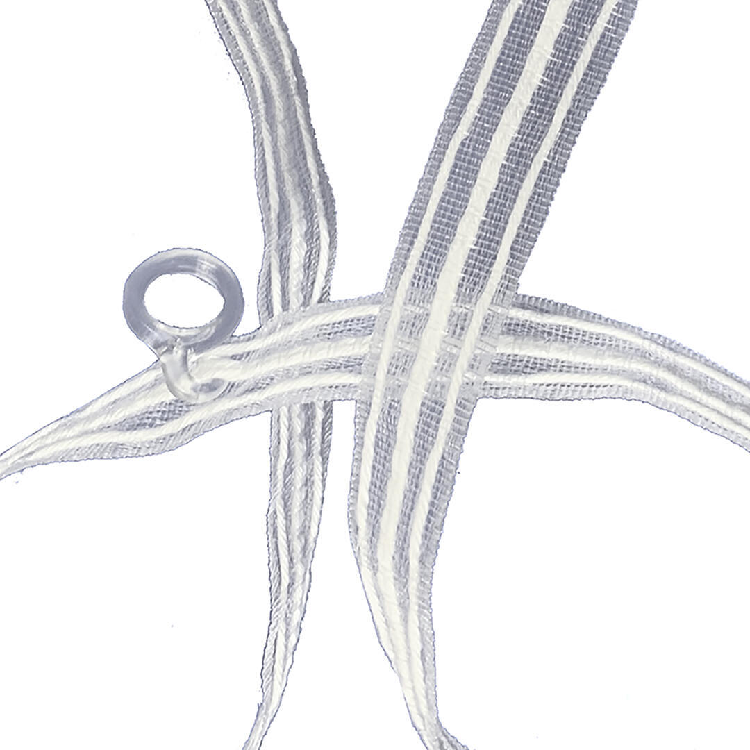 Met gordijnband Diana kun je zelf een romantisch ophaalgordijn maken. Dit band dient verticaal op de stof te worden gestikt. Het band is voorzien van ringetjes en rimpelkoordjes om de stof te laten rimpelen.
