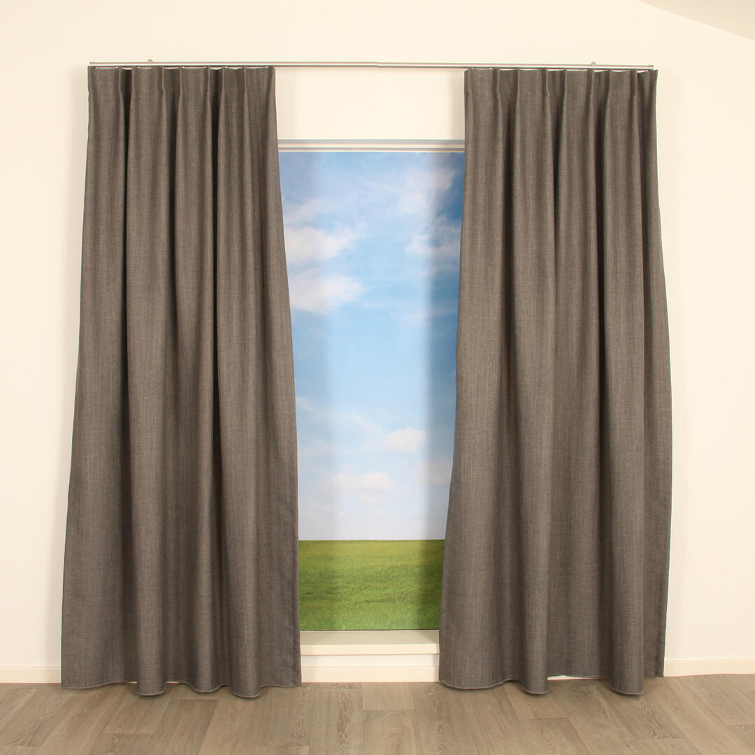 Deze stof is kamerhoog, wat betekent dat deze gordijnen naadloos kunnen worden geconfectioneerd voor een luxe en elegante uitstraling.