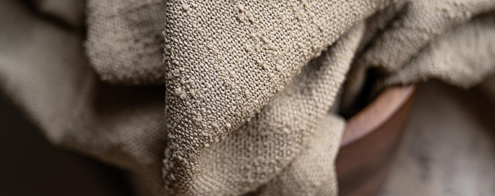 Naast kleur speelt materiaal een steeds grotere rol. In 2026 draait het niet om opvallende prints of uitgesproken dessins, maar om structuur. Stoffen mogen zichtbaar geweven zijn. Ze mogen diepte hebben. Ze mogen iets doen.