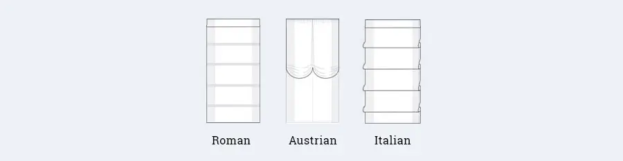 Vouwgordijnen zijn er in veel soorten: de meest gebruikte is de Roman blind. Deze is het meest bekend: met een draad wordt de stof van het vouwgordijn naar boven getrokken en wordt de stof door middel van baleinen horizontaal gevouwen. Zo ontstaan er brede plooien. Bij de roman blind wordt standaard de balein aan de achterzijde gemaakt maar het is ook mogelijk om de baleinen aan de voorkant van het vouwgordijn te maken met een tunnel. Een Austrian blind geeft een klassieker, romantisch effect. Dit model heeft namelijk geen baleinen waardoor de stof geplooid hangt als deze omhoog getrokken wordt. Een Italian blind lijkt qua model op de Roman blind met het verschil dat er aan de voorzijde een bloesend effect ontstaat omdat er meer stof gebruikt wordt dan voor de hoogte van het paneel nodig is.