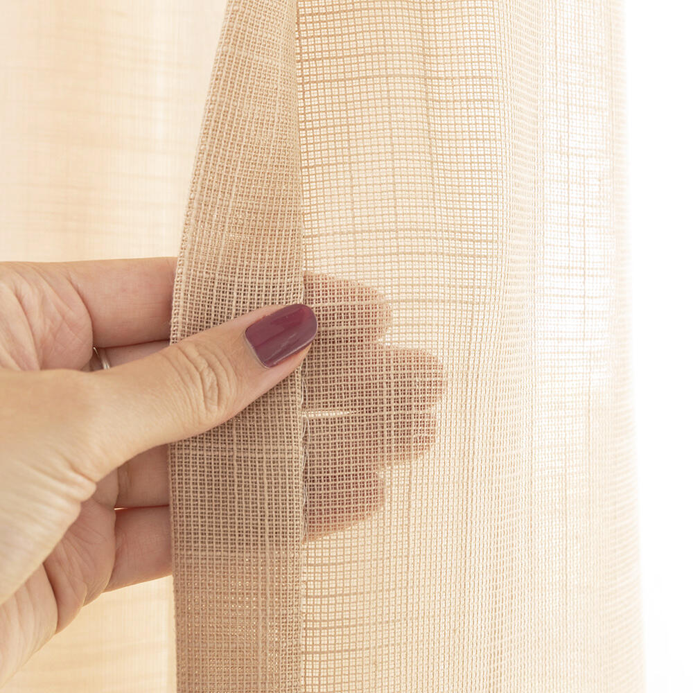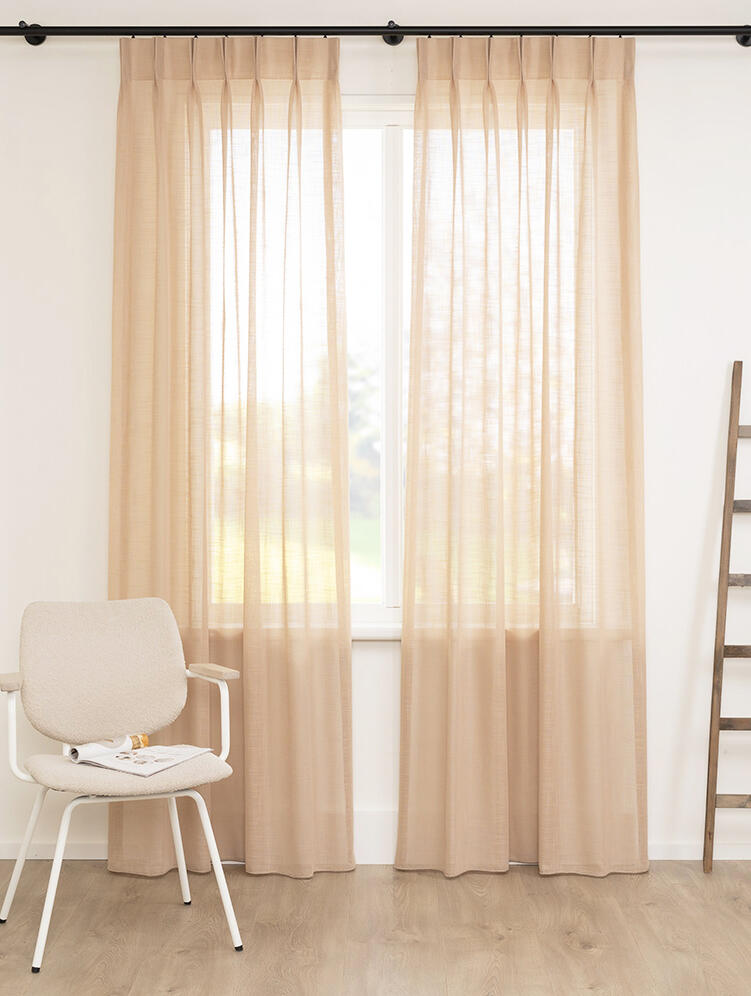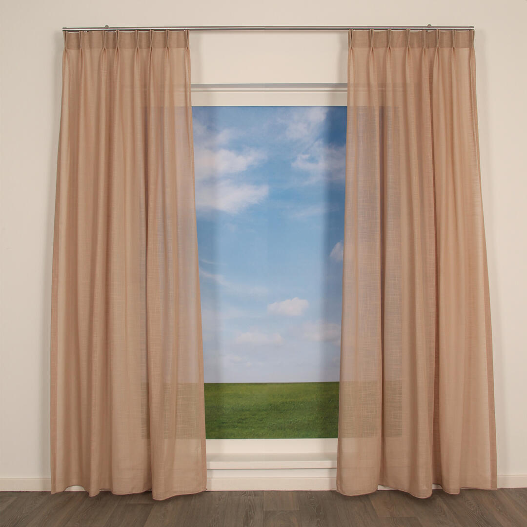 Deze kamerhoge luchtzuiverende Inbetween heeft een luxe Boucle optiek, een open structuur met zowel verticaal als horizontaal onregelmatige verdikkingen in het garen. Dit geeft een speels lijnenspel en ziet er zacht en levendig uit. Door de unieke technologie dat vergelijkbaar is met de werking van planten, zorgt de stof dat vervuiling in de lucht wordt omgezet in schone lucht. Verontreinigde lucht wordt afgebroken en weer gezond, geurloos en fris gemaakt. Het effect is permanent in het textiel aangebracht, bestand tegen wassen en dus blijvend. De technologie is niet schadelijk voor de gezondheid maar juist bevorderend. Standaard wordt deze inbetween afgewerkt met een loodveter. Door de kamerhoge stof kan deze naadloos worden geconfectioneerd. Uitermate geschikt voor wave of een dubbele retourplooi, zodat de stof prachtig in zijn plooi valt.