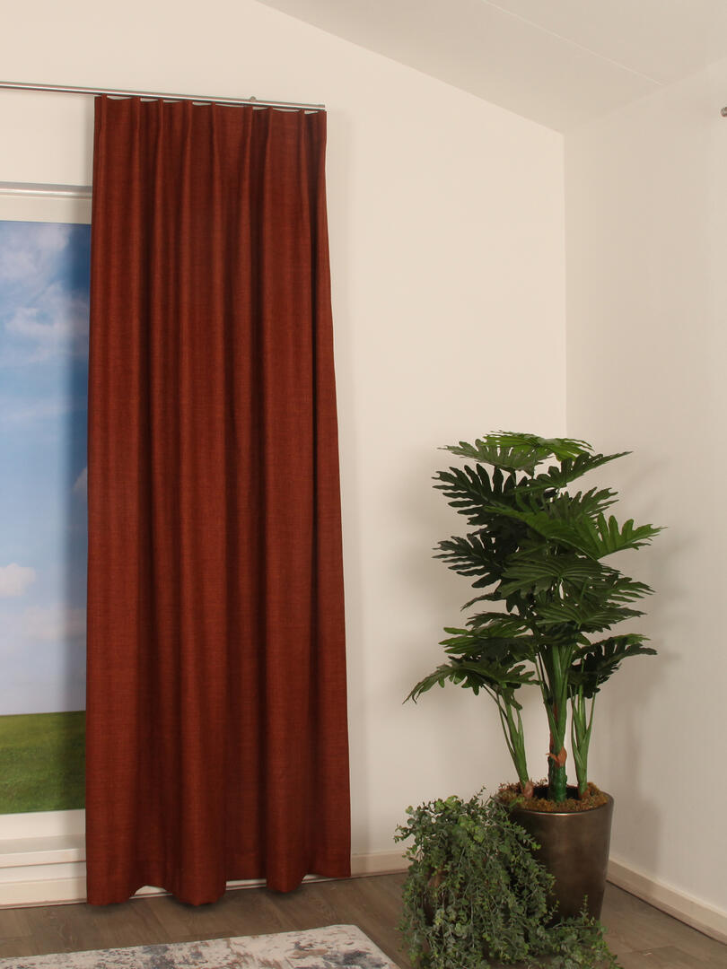De stof is kamerhoog, wat betekent dat deze gordijnen naadloos kunnen worden geconfectioneerd voor een luxe en elegante uitstraling.