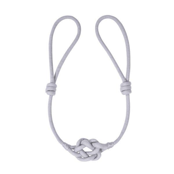 Embrasse met een matte look en een zeer fijne "gebreide" structuur. Deze soepele embrasse is voorzien van grote lussen. Door de lussen kleiner te maken kun je de embrasse verlengen, zo past deze altijd bij de hoeveelheid gordijnstof die je opzij wilt hangen. Heel geschikt voor grotere gordijnpakketten. In het midden is de embrasse voorzien van een gevlochten detail, deze kan op een willekeurige plek op het gordijn geplaatst worden door te variëren met de lengte van de lussen. De embrasse heeft een minimale lengte van 74cm en een maximale lengte van 110cm. Koorddikte 1cm.
