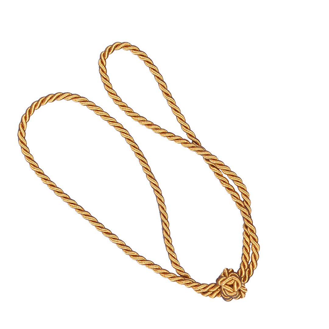 Deze glanzende kleinere embrasse in een gouden kleur geeft je gordijn net dat beetje chic! De fijne koorden van 6mm vormen samen een grote lus die in het midden geknoopt is. Hierdoor ontstaat een mooi detail. De lengte per lus is 30cm, de totale lengte van de embrasse is ongeveer 61cm.