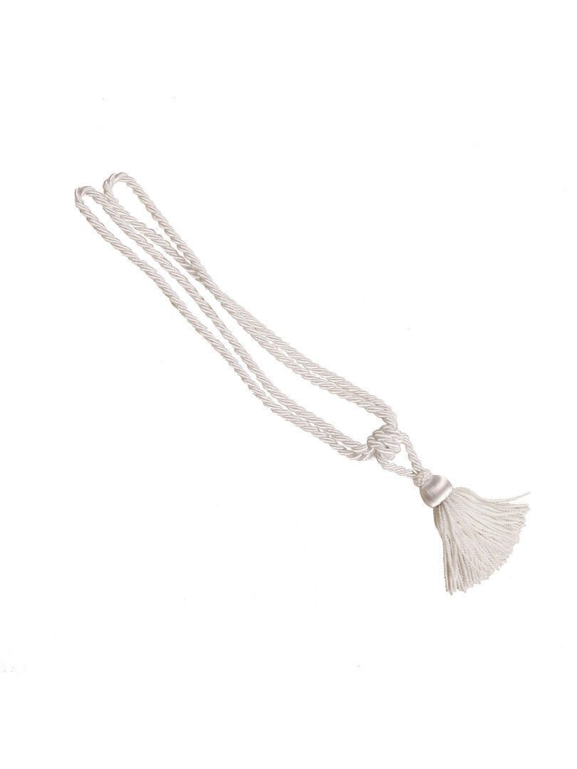 Glanzende embrasse in een witte kleur. Aan het einde van de embrasse zit een kwast bevestigd.