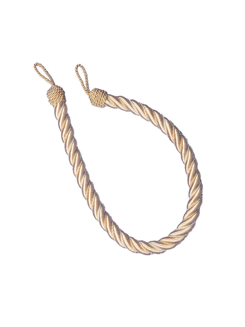 Glanzende champagne embrasse van twee gedraaide koorden. De embrasse heeft een goede kwaliteit en is makkelijk te combineren door het gebruik van meerdere tinten naturel/champagne/zachtgeel