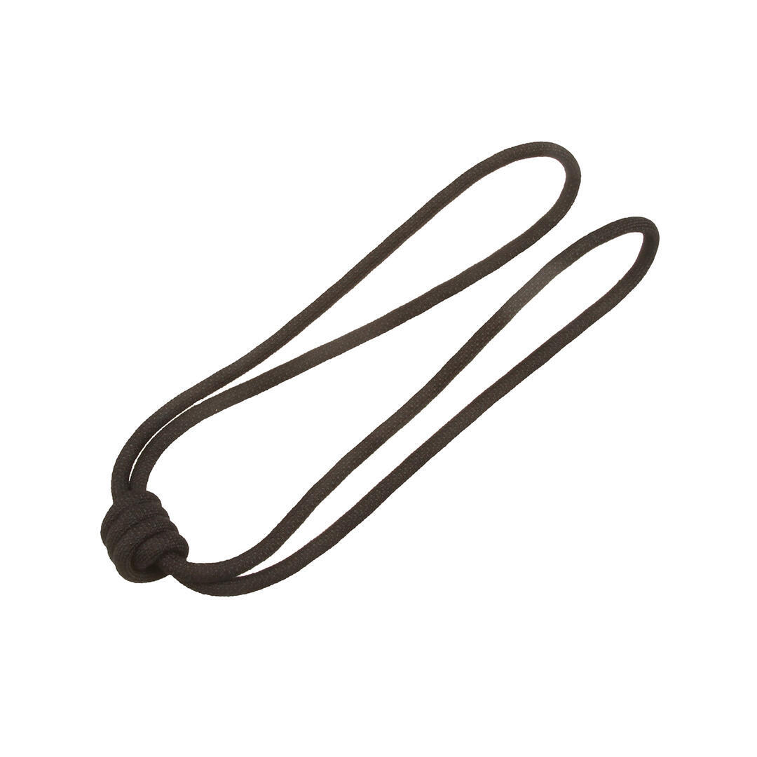 Embrasse met een glanzende look en een zeer fijne "gebreide" structuur. Deze soepele embrasse is voorzien van grote lussen. In het midden is de embrasse voorzien van een "drievoudige" knoop. De embrasse heeft een totale lengte van 64cm recht gemeten en een koorddikte van 1cm. Beide lussen zijn 30cm en de knoop is 4cm.