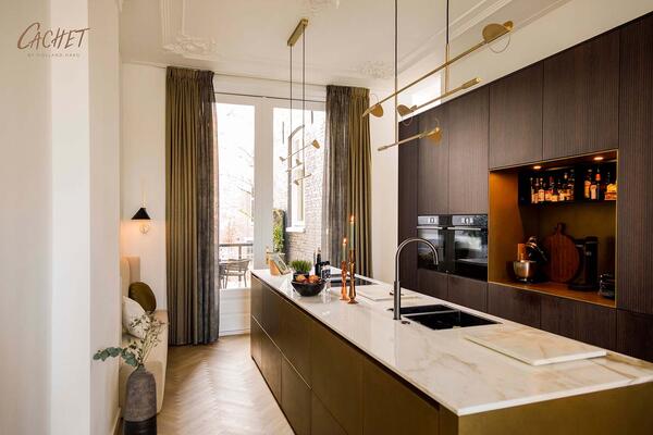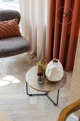 Het hart van een retro en vintage interieur wordt gevormd door de keuze van materialen en kleuren. Warme houtsoorten en natuurlijke materialen worden gecombineerd met rijke stoffen zoals velours, terwijl een kleurrijk palet van oranje, rood, okergeel en smaragdgroen de kamers vult met energie en warmte. Accessoires en meubels in marmer, messing en goud voegen een vleugje elegantie toe, terwijl planten zoals de monstera en cactus een levendige connectie met de natuur bieden.