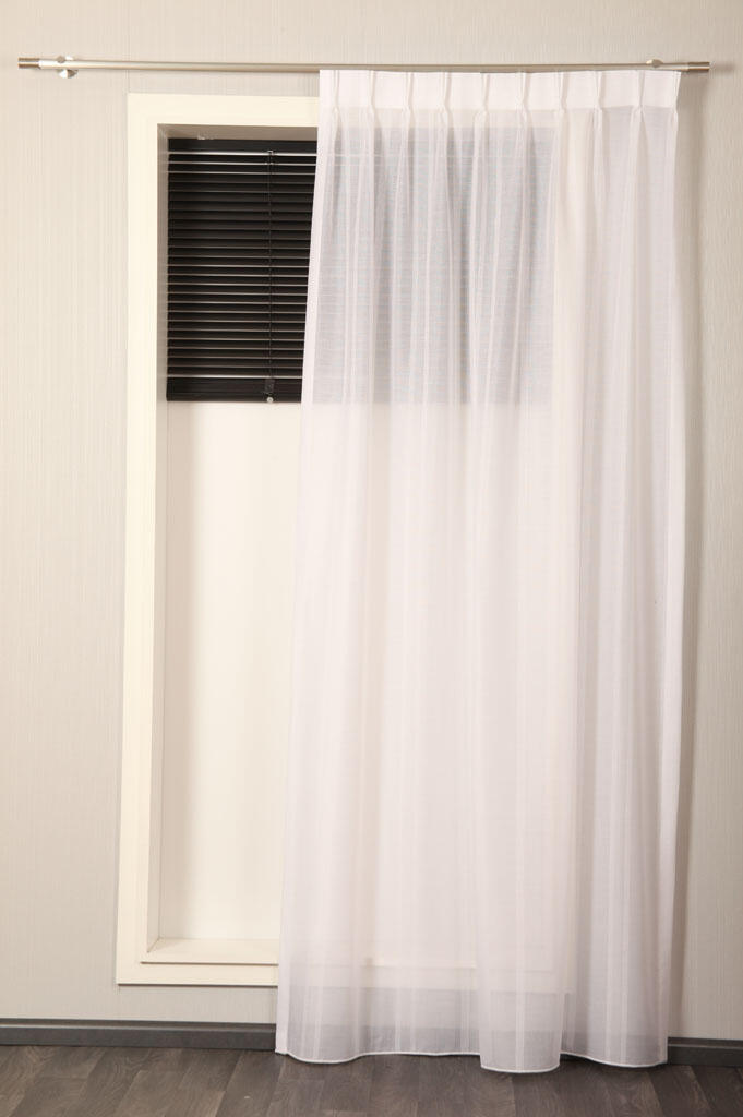 De stof is kamerhoog, wat betekent dat deze gordijnen naadloos kunnen worden geconfectioneerd voor een luxe en elegante uitstraling. Het ontbreken van naden zorgt voor een strak, uniforme look die je ruimte optisch vergroot en het licht op een mooie manier filtert. Deze kamerhoge afwerking biedt niet alleen esthetische voordelen, maar zorgt ook voor een betere lichtwering en een verbeterde geluidsisolatie, waardoor je huis een gevoel van sereniteit en rust uitstraalt.