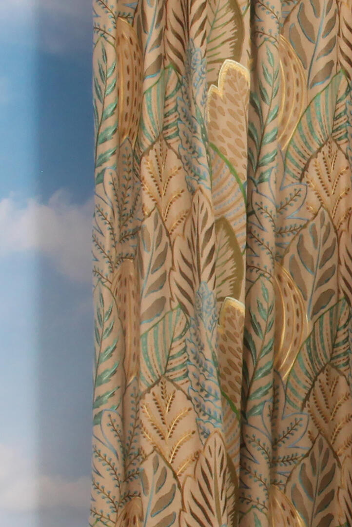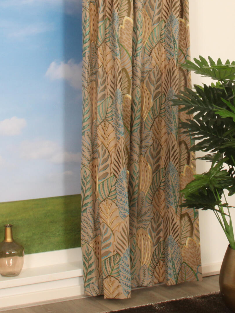 Overgordijn Hortus is een breedtestof van 124cm breed. Bij breedtestoffen word een verticale naad in het gordijn gemaakt op de plaats waar de banen aan elkaar gezet worden.