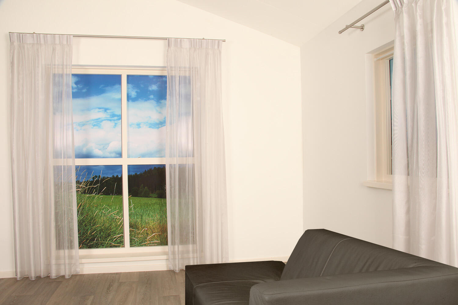 Isen is een kamerhoge stof, wat betekent dat deze gordijnen naadloos kunnen worden geconfectioneerd voor een luxe en elegante uitstraling.