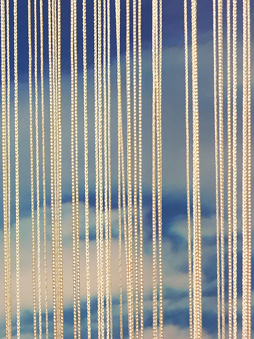 Soepelvallend decoratief koordgordijn met lichtglanzende dunne koorden. Dit gordijn is voorzien van een tunnel en kan opgehangen worden met roedes tot 35mm dikte.