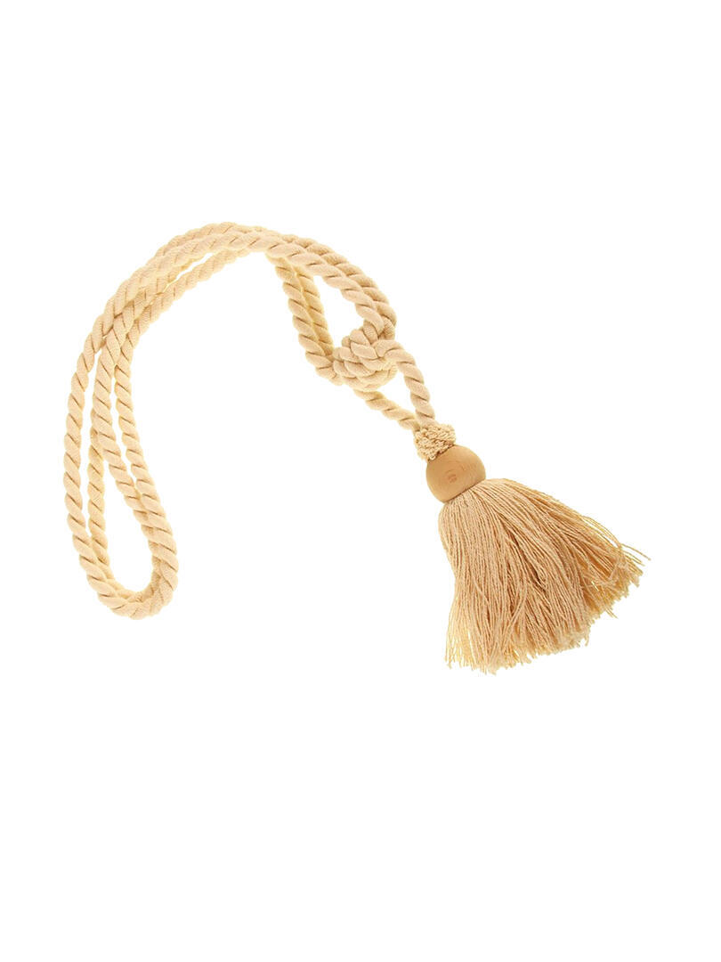 Embrasse met een matte look en een fijne structuur. Deze soepele embrasse is voorzien van 2 grote lussen van 35 cm. In het midden is de embrasse voorzien van een houten kraal met daaronder een kwast van 10 cm.