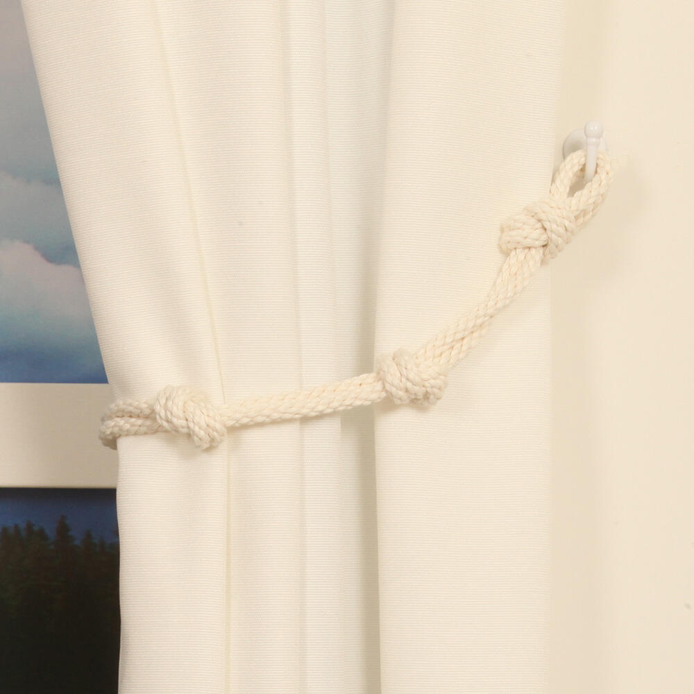 Embrasse in een naturel kleur gemaakt van jute in een natuurlijke look. Grover gevlochten koord met knopen en aan de uiteinden geknoopt met een lus. De lengte van de embrasse tussen de lussen is 65cm. De totale lengte inclusief lussen is 75cm.