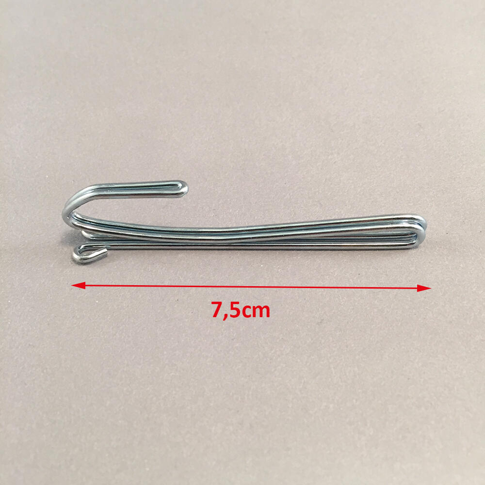 Metalen inschuifhaak geschikt voor gebruik bij 8cm gordijnband. Hoofdje 0 dus geschikt voor gordijnen die onder de rail of roede komen te hangen.
