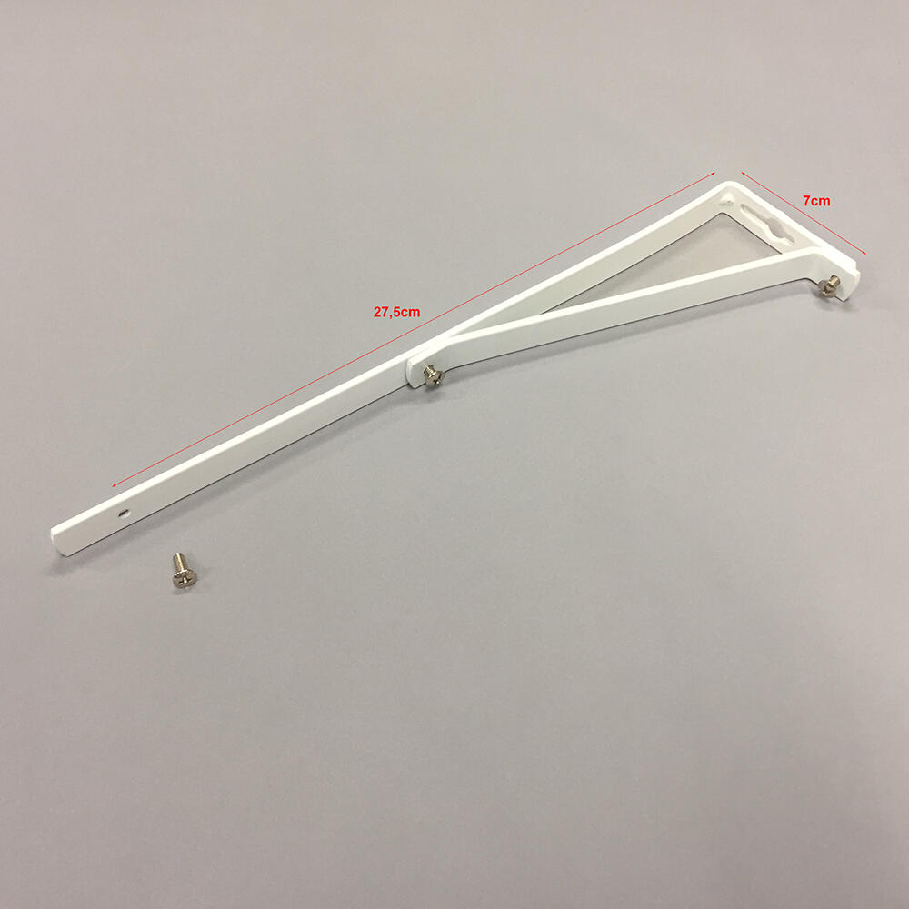 Universele afstandssteun wit van 30cm met schoor. Deze steun kan gebruikt worden in combinatie met de normale plafondsteunen van gordijnrails. Met het meegeleverde schroefje zet u de plafondsteun vast aan deze steun. (Schroeven voor bevestiging aan muur niet meegeleverd)