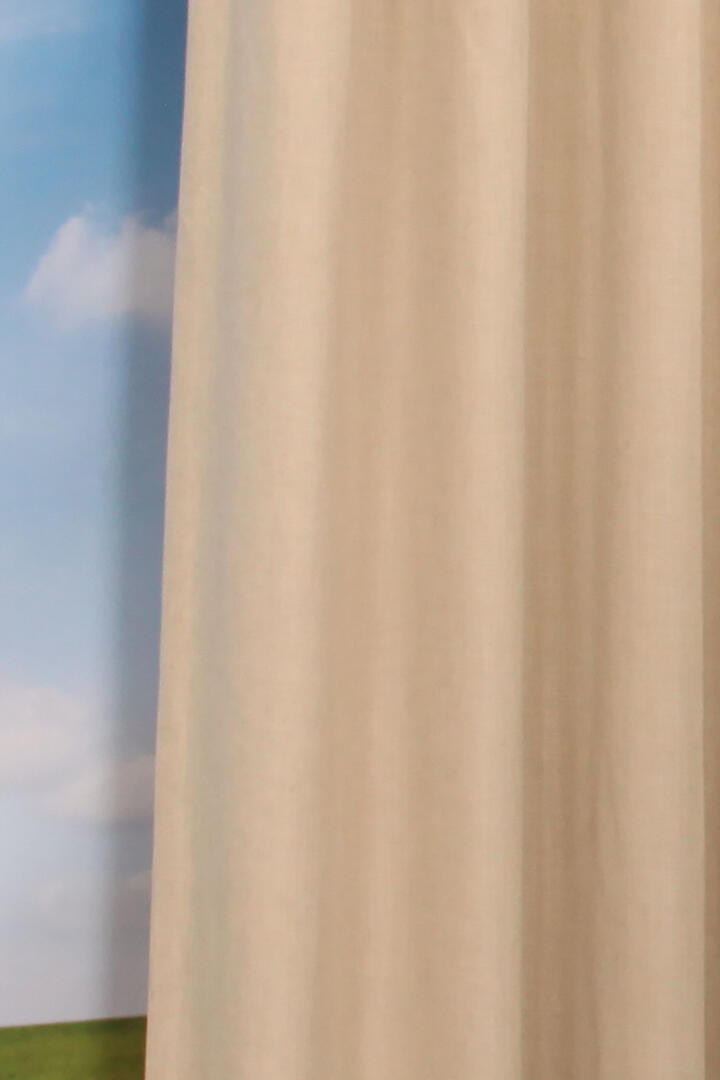 Inbetween Retwist is kamerhoog, wat betekent dat deze gordijnen naadloos kunnen worden geconfectioneerd voor een luxe en elegante uitstraling.