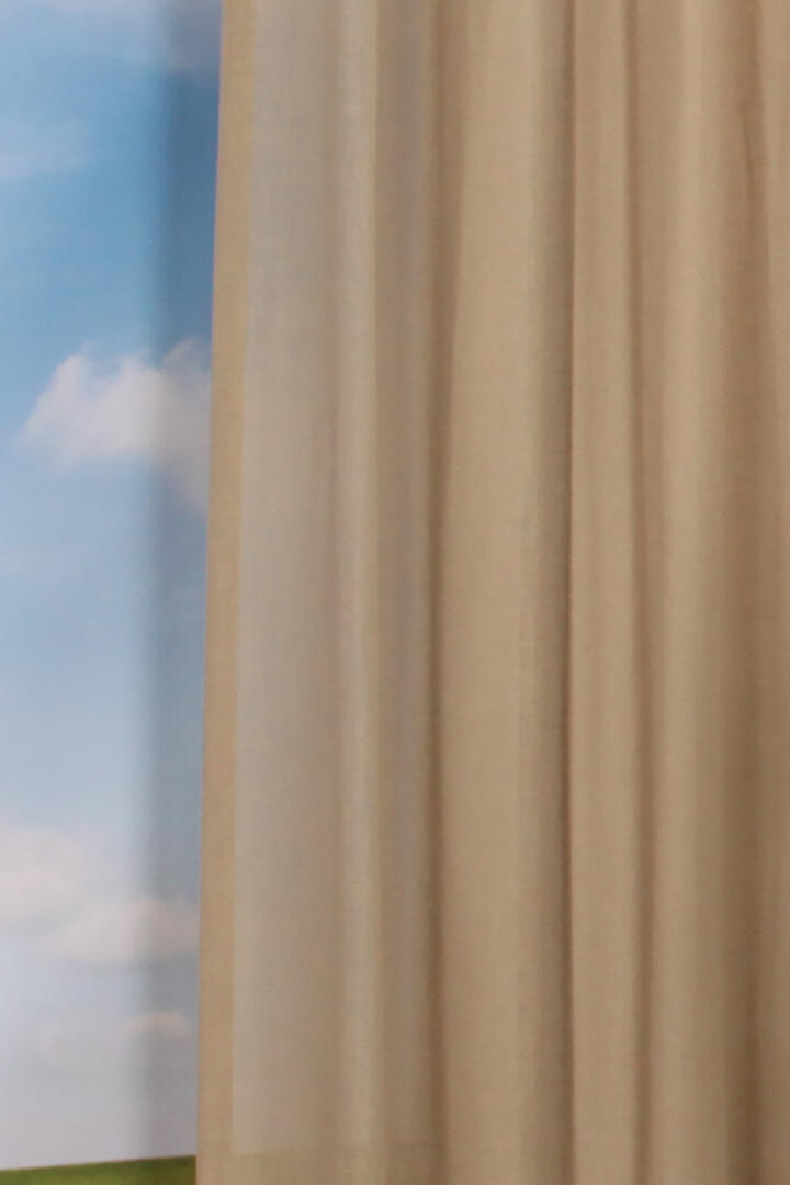 Inbetween Retwist is kamerhoog, wat betekent dat deze gordijnen naadloos kunnen worden geconfectioneerd voor een luxe en elegante uitstraling.