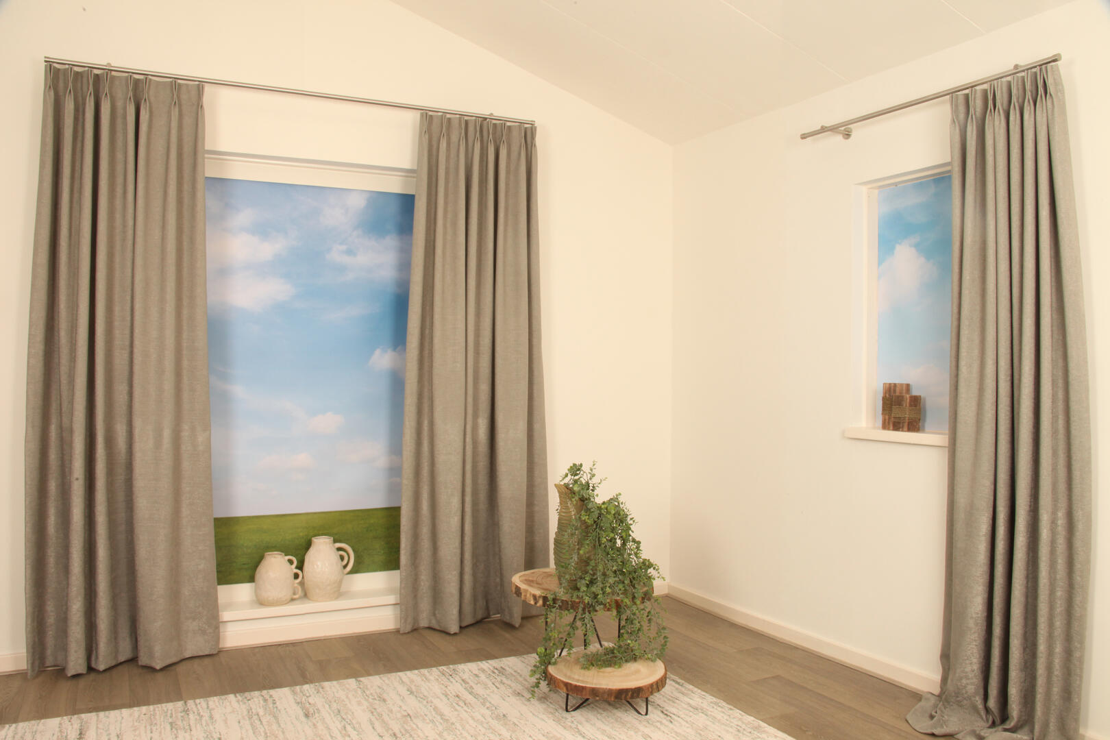 Rib is een kamerhoge stof, wat betekent dat deze gordijnen naadloos kunnen worden geconfectioneerd voor een luxe en elegante uitstraling.
