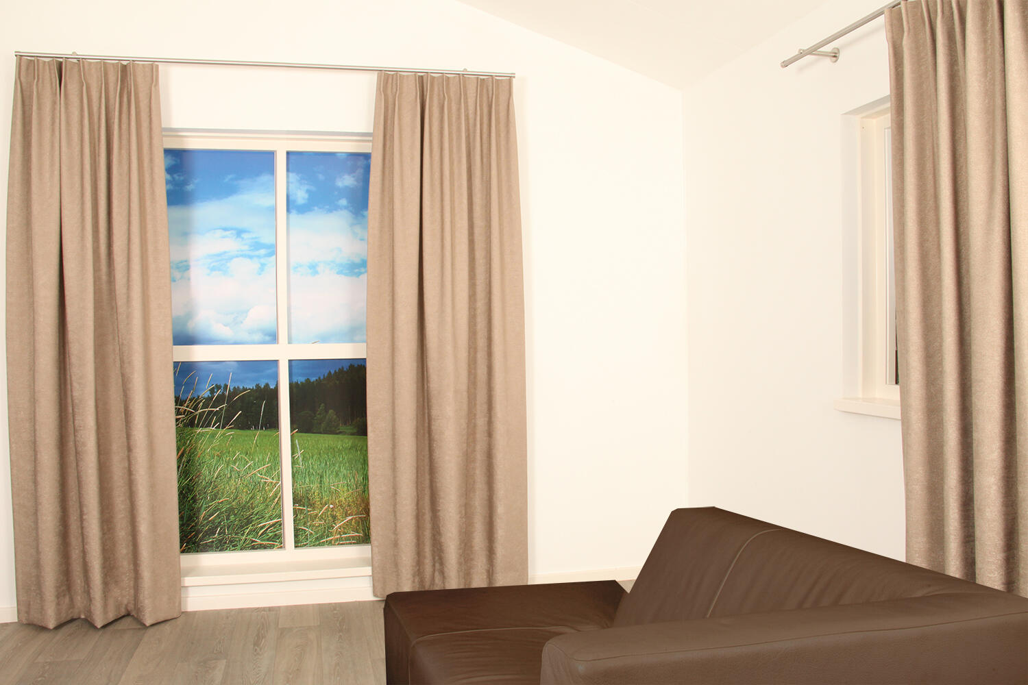 Rib is een kamerhoge stof, wat betekent dat deze gordijnen naadloos kunnen worden geconfectioneerd voor een luxe en elegante uitstraling.