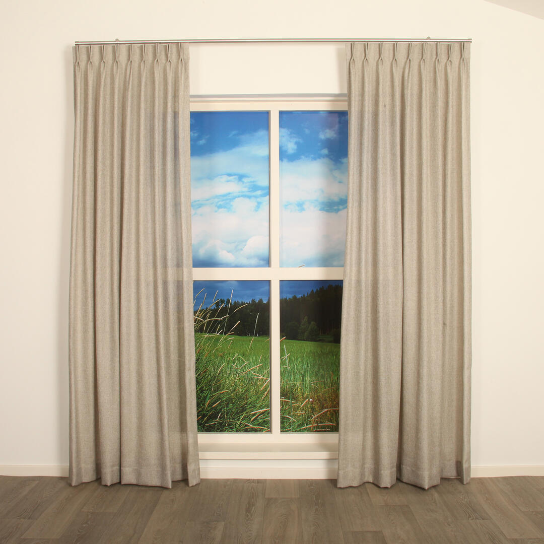 Kies je voor een gordijn met een tunnel aan de bovenzijde worden er geen plooien in het gordijn gemaakt. De tunnel (ook wel schuifzoom genoemd) wordt om de roede geschoven. Standaard gaan wij uit van een roede van 13mm. Het is mogelijk om een andere diameter in te voeren als je roede een andere diameter heeft.