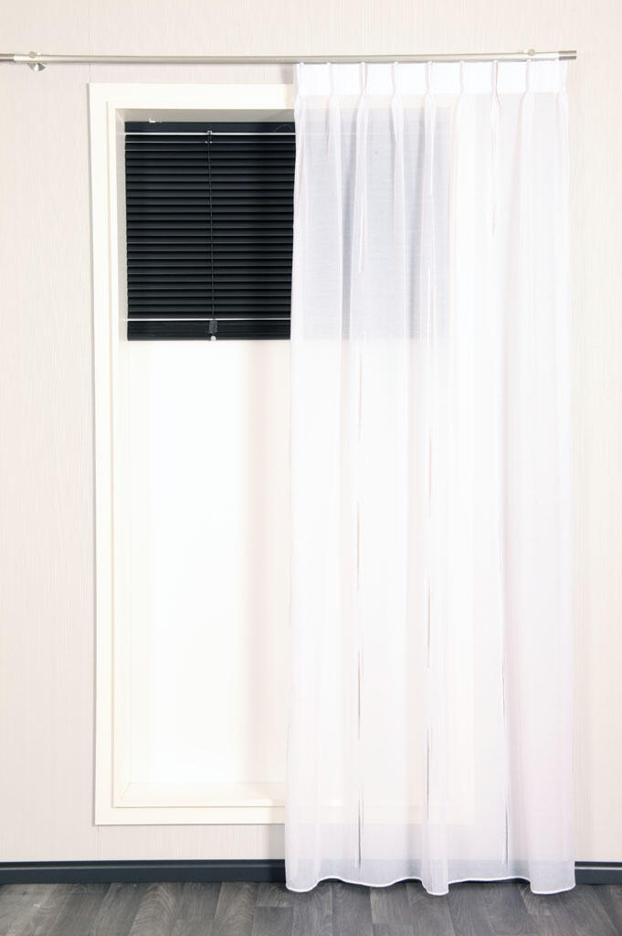 Wells is een kamerhoge stof, wat betekent dat deze gordijnen naadloos kunnen worden geconfectioneerd voor een luxe en elegante uitstraling.