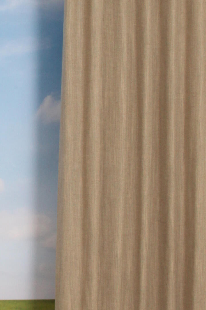 Overgordijn Youghal is een breedtestof van 135cm. Bij breedtestoffen word een verticale naad in het gordijn gemaakt op de plaats waar de banen aan elkaar gezet worden.